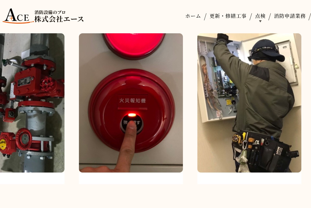 株式会社エースは、建物とそこに集う人々の安全を守る消防設備の専門会社です。